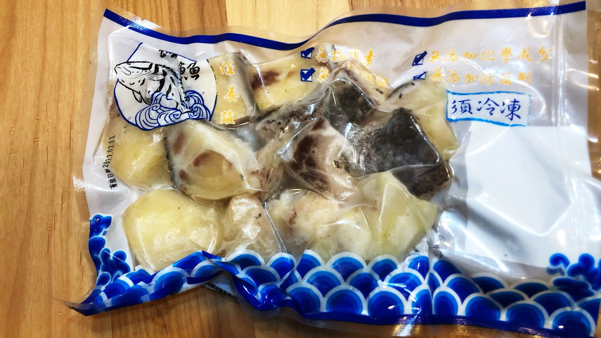 0.5公分厚的魚排片,可以用來涮火鍋也可以煎魚排,帶皮的龍膽石斑魚片,魚皮約1.5公分厚喔。