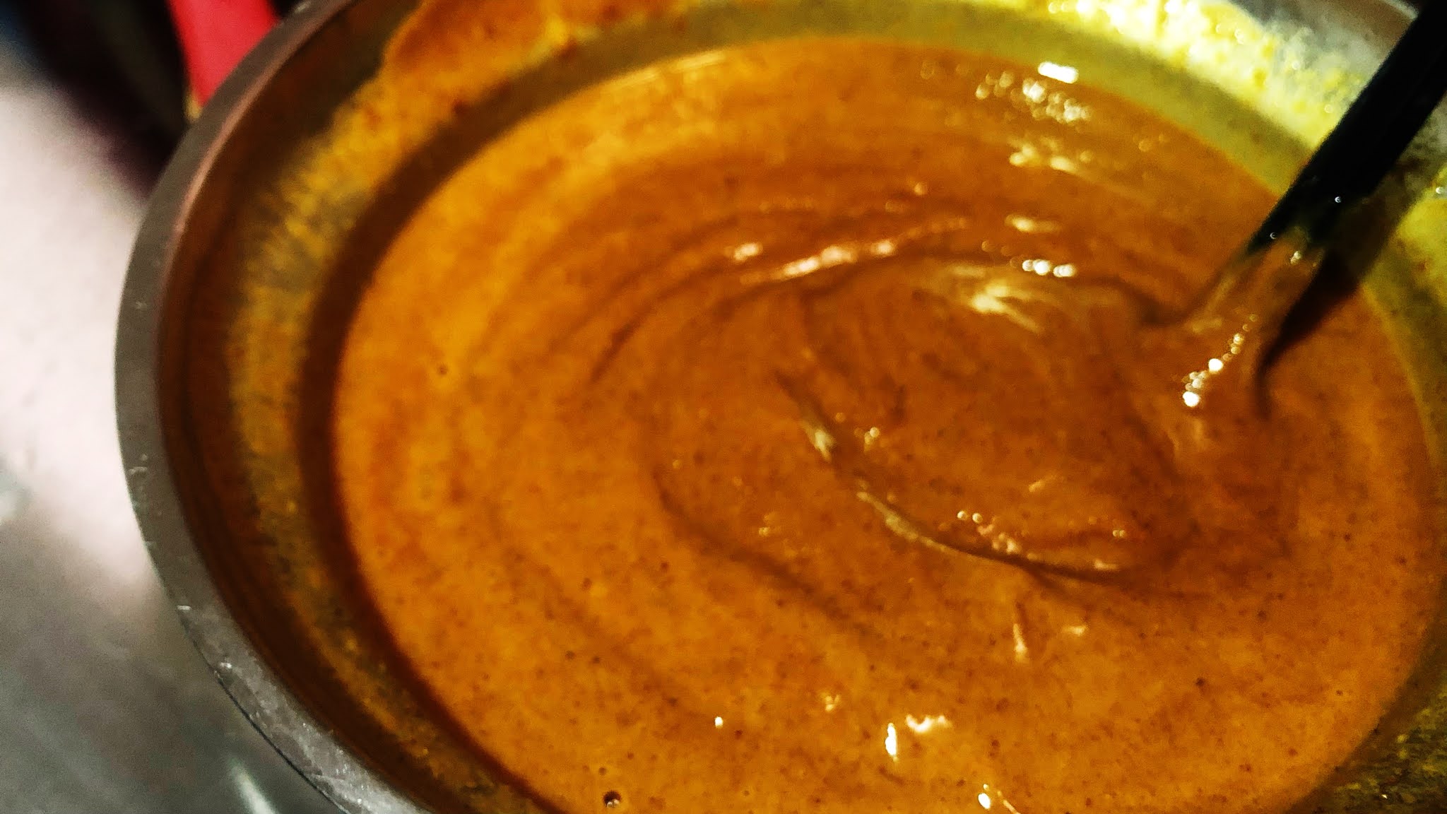 7.溶解後倒入燉煮90分鐘後的咖哩料中,充分攪拌均勻。