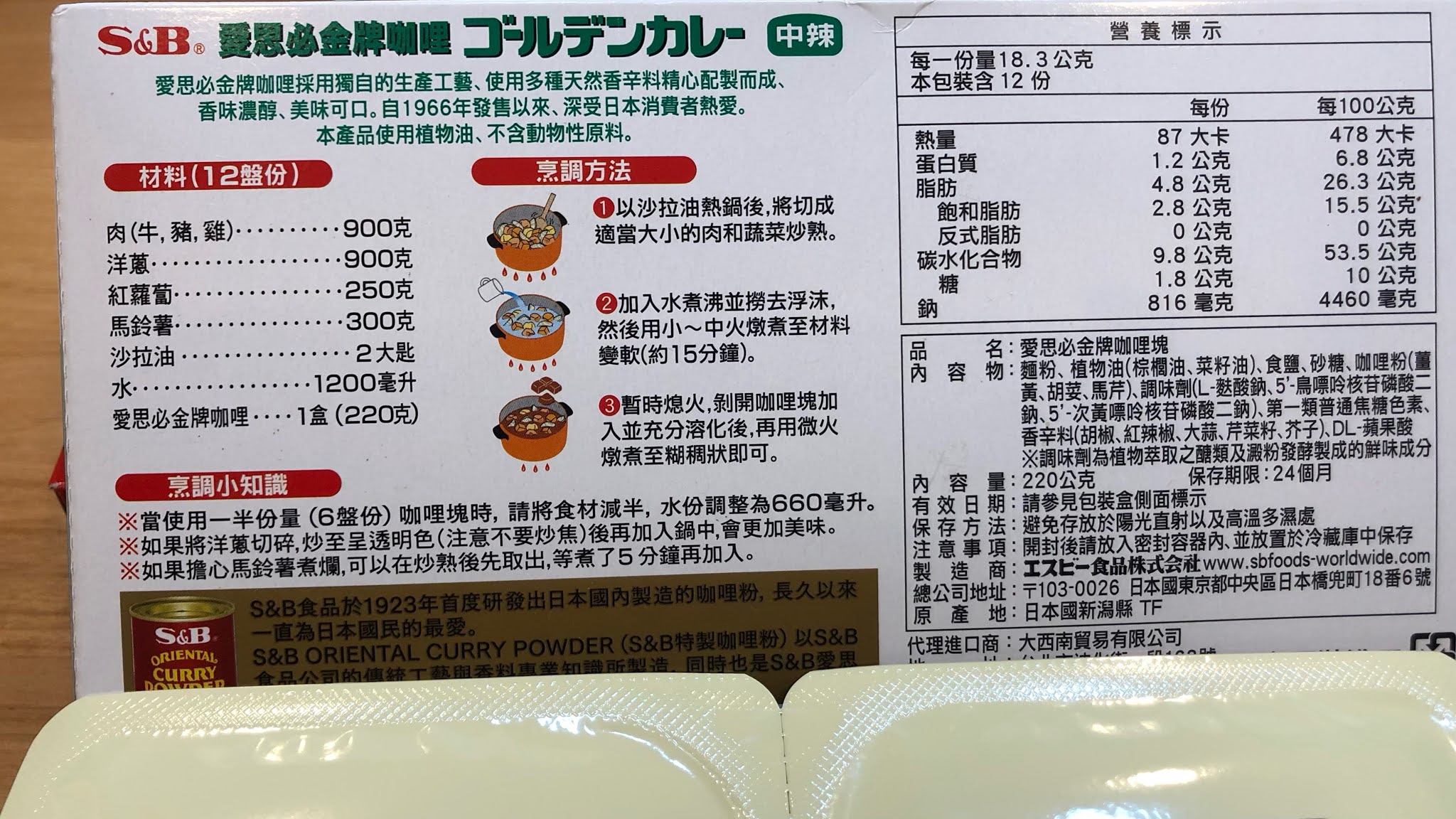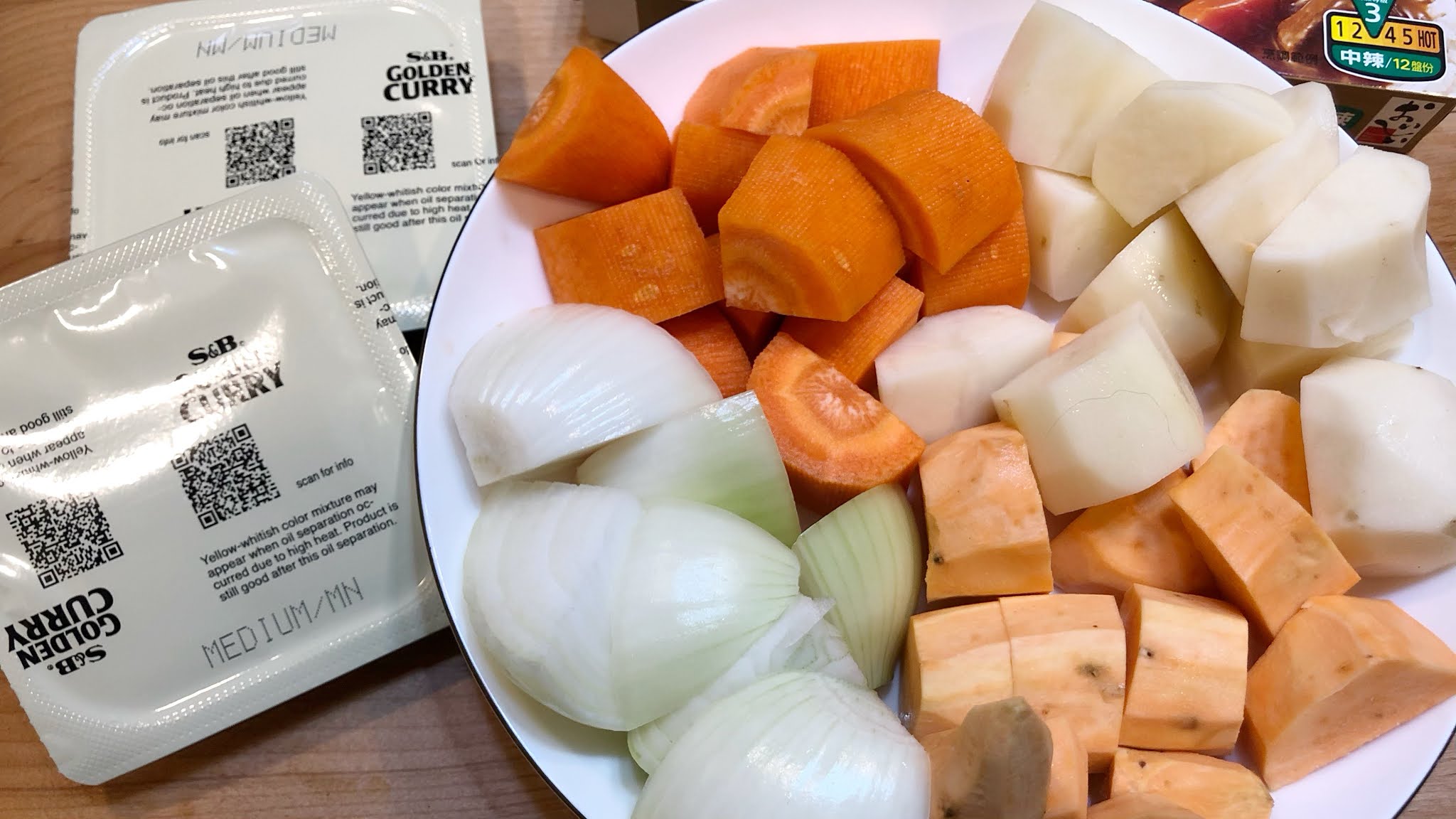 最近跟朋友討論廚藝,每個人拿手菜都不一樣,自稱小廚娘的我,竟沒有煮過咖哩飯,於是自告奮勇要煮正宗日式咖哩飯,挑戰日本國民咖哩風味,上網爬了很久的文,發現大家都推薦S&B金牌咖哩,因為不知道愛吃什麼口味,決定一口氣全部買回來,反正家裡常有朋友來聚餐,S&B咖哩有甜味、辣味、大辣,因為有人不敢吃太辣,所以決定挑戰普通辣味。