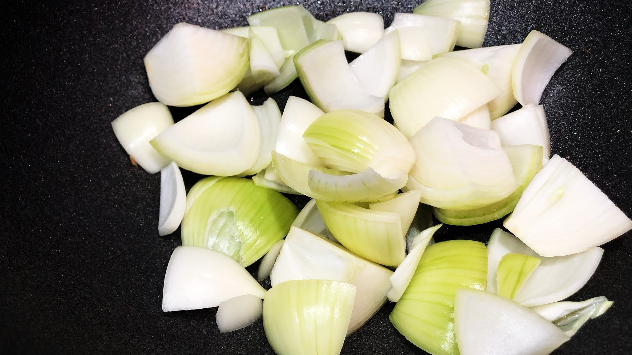 1.首先用一點橄欖油將洋蔥爆香,大大一塊慢慢炒開到洋蔥變色,洋蔥獨有的香氣飄出來。