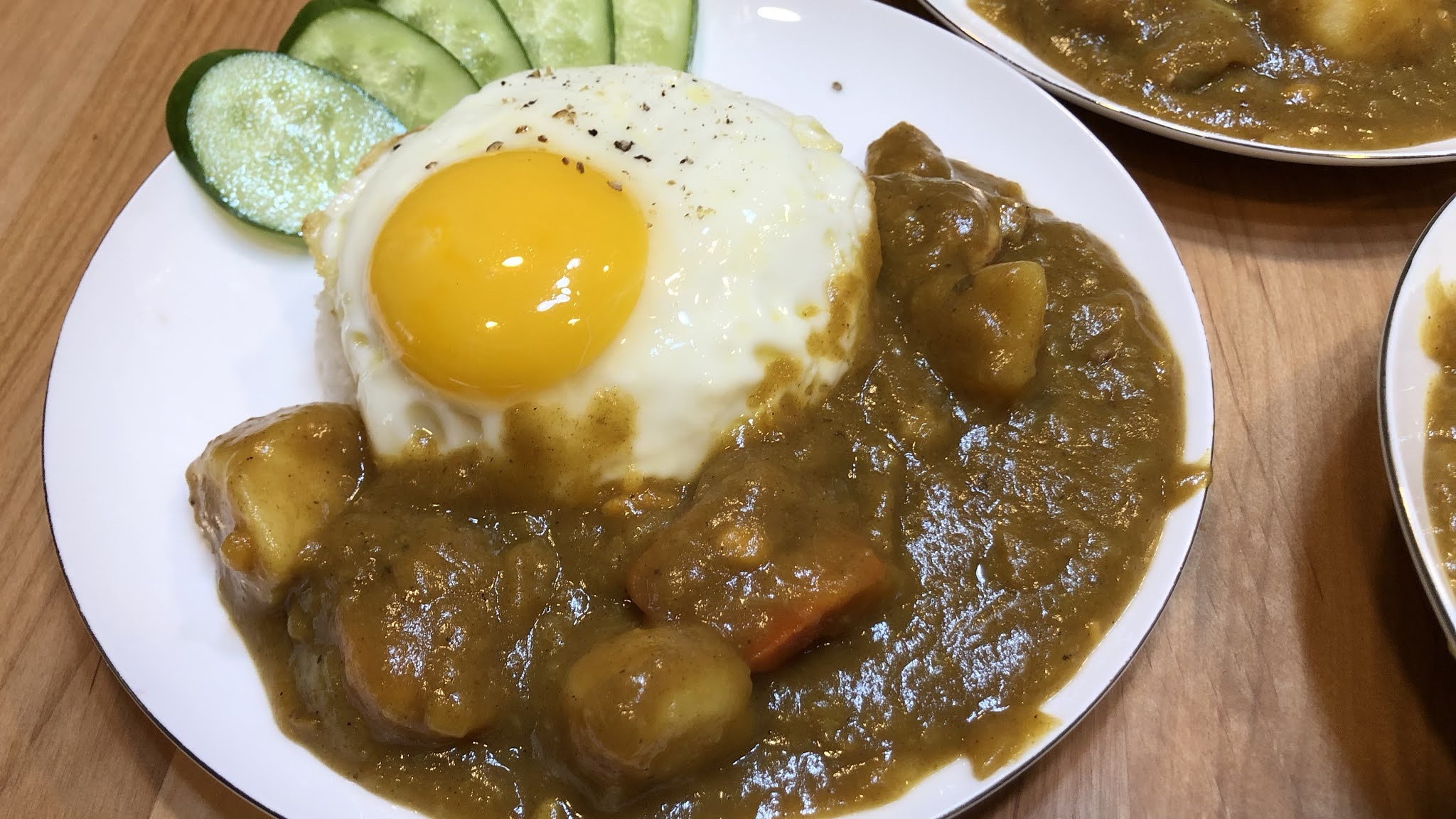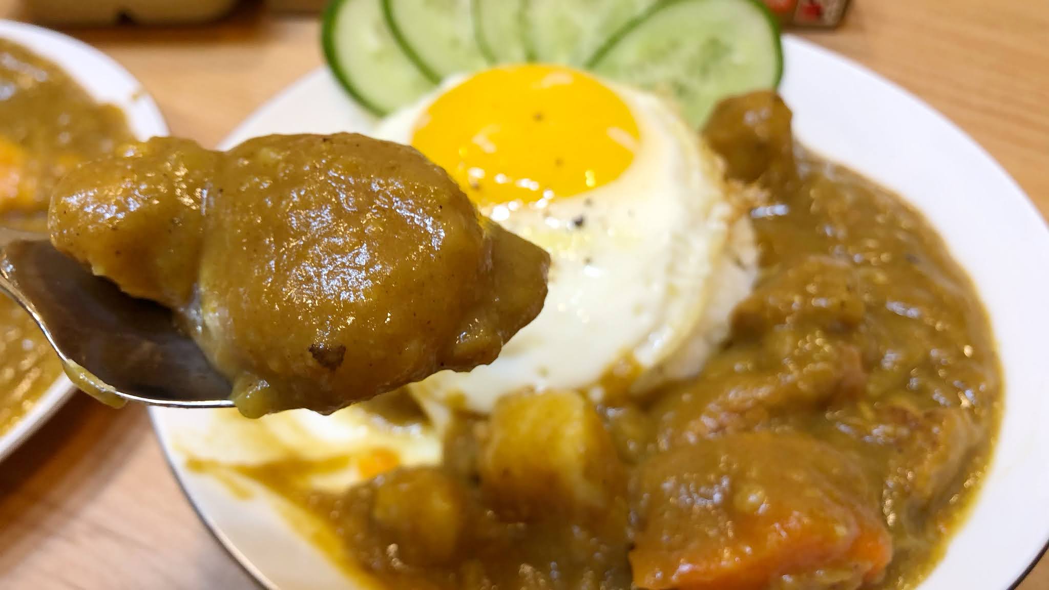 9.一碗白飯+耗時3小時燉煮的咖哩+一顆荷包蛋+數片小黃瓜,100%日式咖哩就完成了。